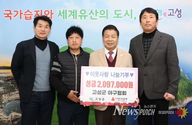 뉴스펀치 김길룡 기자 | 고성군 야구협회(협회장 신용락)는 12월 26일, 고성군을 방문하여 어려운 이웃에게 써달라며 이웃돕기 성금 209만 7천 원을 기탁했다.
