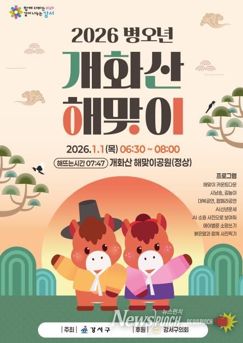 뉴스펀치 김완규 기자 | 서울 강서구는 2026년 1월 1일 병오(丙午)년 붉은 말의 해를 맞아 개화산 정상(금낭화로17길 213)에서 ‘2026 개화산 해맞이 행사’를 개최한다.