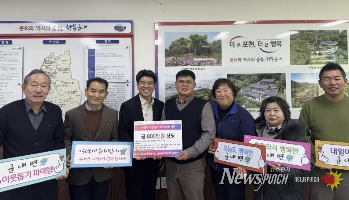 뉴스펀치 김길룡 기자 | 포천시 군내면 행정복지센터는 지난 26일 유교2리 마을주민과 청량동축복교회, 김상호 ㈜지앤인 대표가 지역 내 어려운 이웃을 돕기 위한 성금과 쌀을 사회복지공동모금회를 통해 기탁했다고 밝혔다.