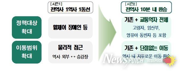 '2단계 전역사 10분내 환승 추진…시민불편 집중 13개역 대상, 교통약자 환승시간 58% 감축'