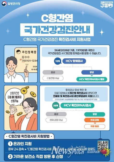 뉴스펀치 김길룡 기자 | 경상남도는 2026년부터 국가건강검진 결과 C형간염 항체 양성 판정을 받은 56세 도민(2026년 기준 1970년생)을 대상으로 시행하는 확진 검사비 지원사업을 모든 의료기관으로 확대한다고 밝혔다.