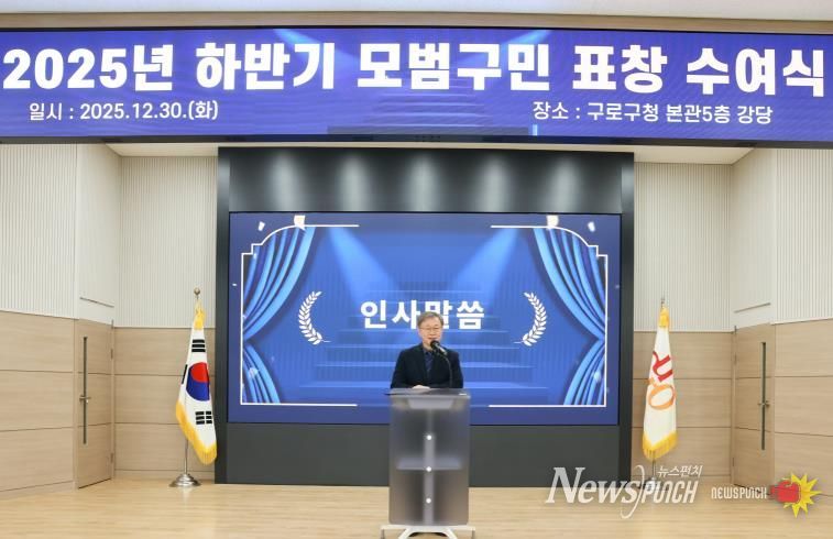 뉴스펀치 김완규 기자 | 구로구가 지난 30일 구청 5층 강당에서 ‘2025년 하반기 모범구민 표창 수여식’을 개최했다.