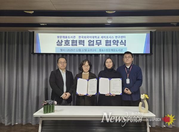 뉴스펀치 김완규 기자 | 서울 도봉구 쌍문채움도서관이 지난 12월 17일 한국외국어대학교 세미오시스연구센터와 지역주민의 인문 소양 증진과 인문학 네트워크 강화를 위한 업무협약을 체결했다.