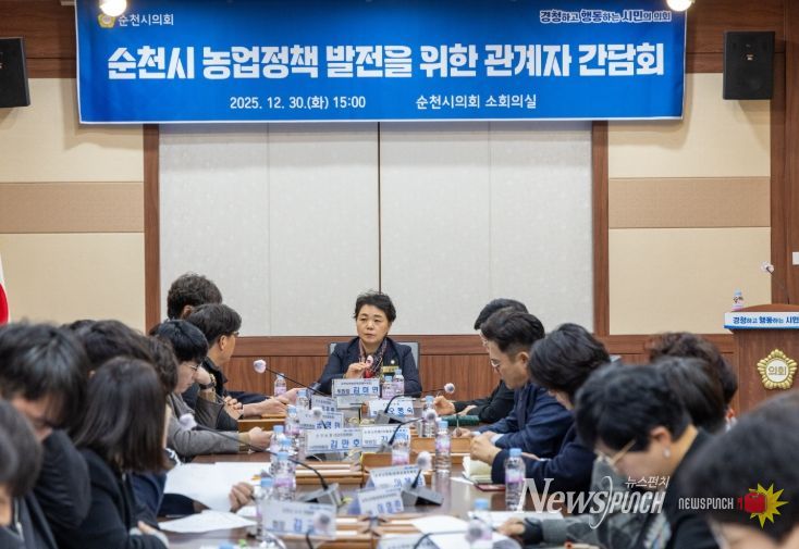 뉴스펀치 조평훈 기자 | 순천시의회는 지난 12월 30일 순천시의회 소회의실에서 '순천시 농업정책발전을 위한 관계자 간담회'를 개최하고, 관계 부서 및 청년 농업인 등과 함께 실질적인 농업지원 방안을 모색했다.