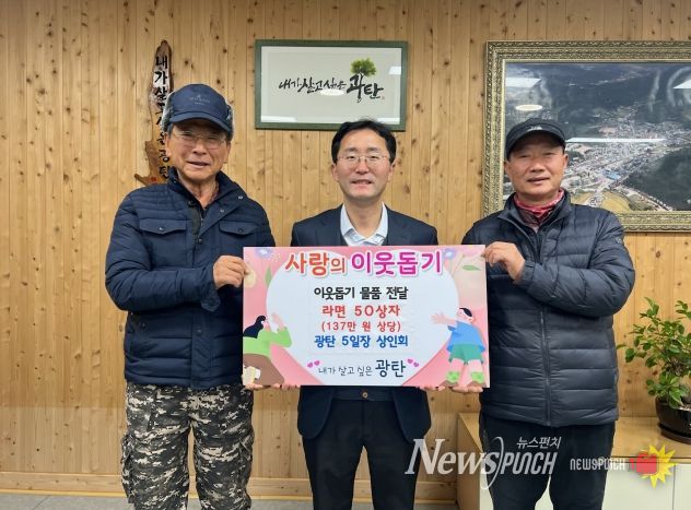 광탄 5일장 상인회(회장 정찬경)는 지난 30일, 관내 취약계층을 돕기 위해 라면 50상자(137만 원 상당)를 광탄면에 기탁했다. 이번 기부 물품은 경기 침체 속에서도 이웃을 먼저 생각한 상인들이 자발적으로 마음을 모아 마련한 것으로, 도움이 필요한 가정에 배부될 예정이다.