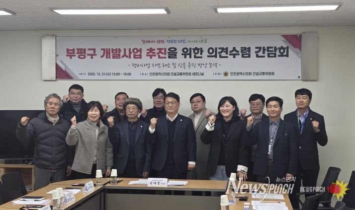 뉴스펀치 김길룡 기자 | 인천광역시의회 건설교통위원회는 31일 시의회 별관 5층 건설교통위원회 세미나실에서 ‘부평구 개발사업 추진을 위한 의견 수렴 간담회’를 개최했다.