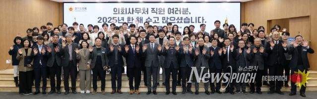 뉴스펀치 김길룡 기자 | 경기도의회 김진경 의장(더민주·시흥3)은 31일 도의회 대회의실에서 2025년 한 해를 마무리하는 의회사무처 종무식을 열고, 사무처 직원들에 대한 격려와 감사의 마음을 전했다.