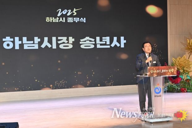 뉴스펀치 김길룡 기자 | 하남시는 31일 시청 대강당에서 전 직원이 참석한 가운데 2025년 종무식을 개최하고, 한 해 동안의 성과를 돌아보며 2026년 시정 운영 방향을 공유했다. 이날 종무식은 2025년 시정 주요 성과를 담은 영상 상영을 시작으로, 시장 송년사, K-pop 댄스 챌린지 공연, 유공자 표창 수여 순으로 진행됐다.