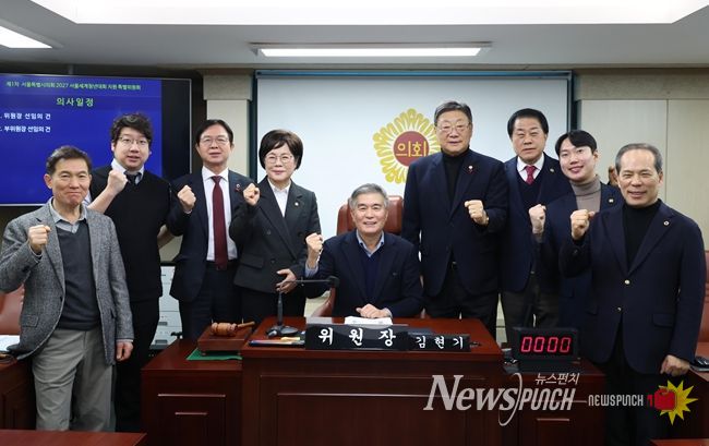 뉴스펀치 김완규 기자 | 「2027 서울세계청년대회 지원 특별위원회」는 12월 31일 제1차 회의를 개최하고, 위원장에 김현기 의원(전반기 의장, 국민의힘, 강남3)을, 부위원장에는 문성호 의원(국민의힘, 서대문2)을 선임하는 등 총 10명의 위원 구성을 마쳤다.