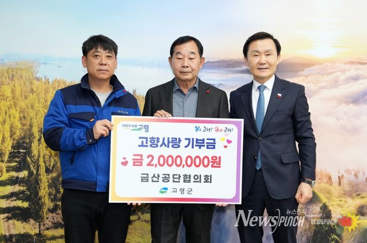 뉴스펀치 김길룡 기자 | 12월 31일 수요일 금산공단협의회(회장 양승조)에서 고령군청을 방문해 고향사랑기부금 2백만원을 기탁했다.