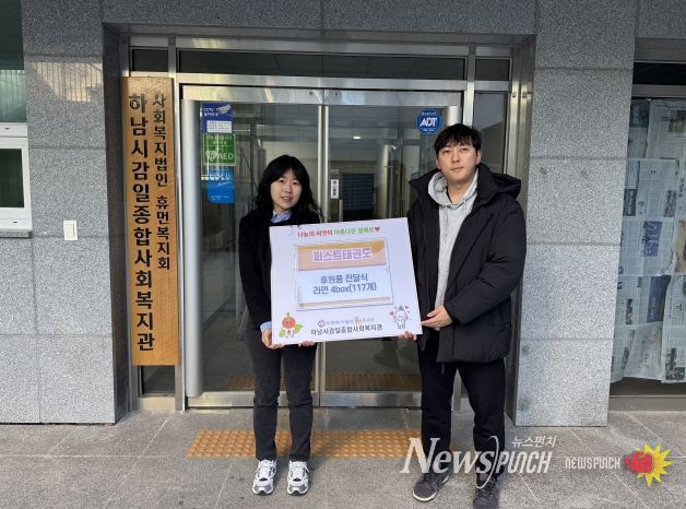 뉴스펀치 김길룡 기자 | 감일퍼스트태권도장(관장 이양성)은 지난 12월 26일 하남시감일종합사회복지관(사회복지법인 휴먼복지회 운영)에 ‘사랑의 라면트리’ 라면 117개를 전달했다.