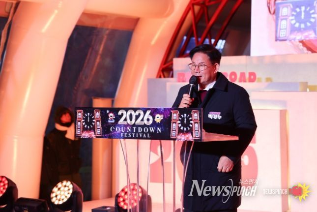 뉴스펀치 김완규 기자 | 박강수 마포구청장은 12월 31일 밤 11시, 레드로드 R6 에어돔에서 열린 ‘2026 레드로드 카운트다운 페스티벌’ 현장을 찾아 구민과 관광객들과 함께 새해맞이 시간을 보냈다. 이어 1월 1일 새벽에는 하늘공원 정상에서 열린 ‘2026 신년 해맞이 축제’에 참석해 새해 첫 일출을 함께 맞이하며 구민의 건강과 행복을 기원했다.