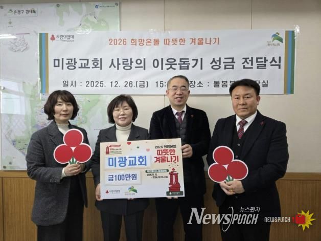 뉴스펀치 김완규 기자 | 서울 은평구는 지난달 26일 미광교회와 2026 희망온돌 따뜻한 겨울나기 사랑의 이웃돕기 성금 전달식을 가졌다고 밝혔다.