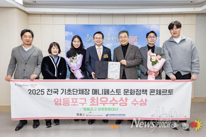 뉴스펀치 김완규 기자 | 영등포구가 사단법인 한국매니페스토실천본부가 주최한 ‘2025년 제1회 전국 메니페스토 문화정책 콘체르토(Concerto)’에서 문화활동 활성화 분야 최우수상을 수상했다고 밝혔다.