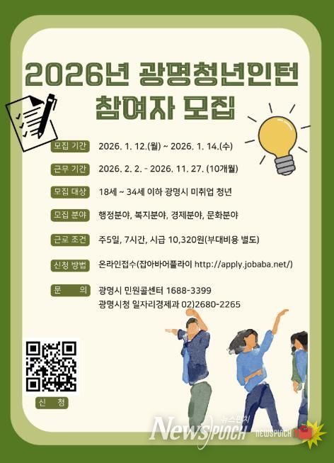 뉴스펀치 김길룡 기자 | 광명시가 오는 12일부터 14일까지 ‘2026년 상반기 청년 일자리 사업’ 참여자 103명을 모집한다.