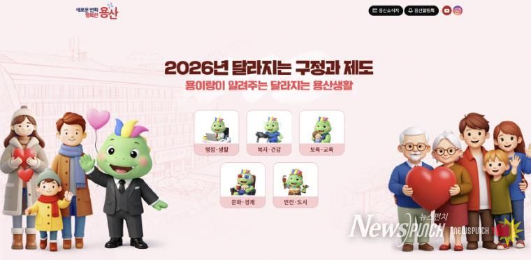 뉴스펀치 김완규 기자 | 서울 용산구가 2026년 새해를 맞아 구민의 일상에 직접적인 변화를 가져올 주요 정책과 제도를 정리한 ‘2026 달라지는 구정과 제도’를 2일 구 누리집에 공개했다.