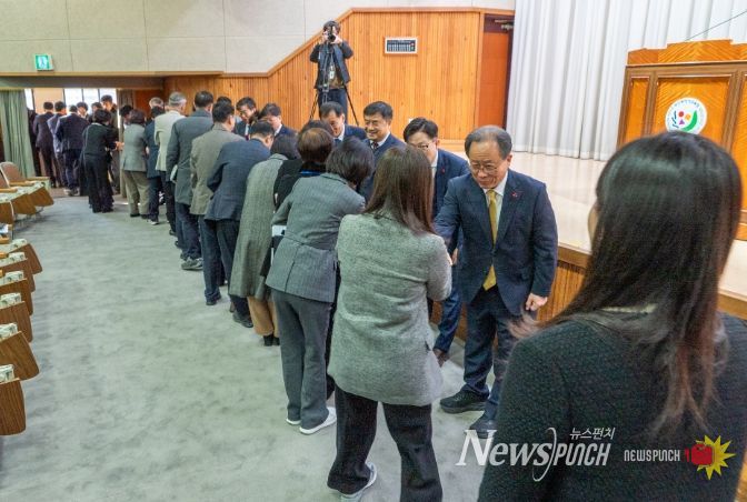 뉴스펀치 김길룡 기자 | 부산광역시교육청은 2일 오전 8시 30분 시교육청 대강당에서 전 직원이 참석한 가운데 ‘2026년 시무식’을 갖고 병오(丙午)년, 적마(赤馬)의 해 부산교육 발전을 위한 힘찬 출발을 다짐했다.