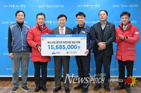 뉴스펀치 김길룡 기자 | 여수시는 지난 12월 31일 시 직원들이 '희망2026나눔캠페인'에 성금 1,568만 5천 원을 전달했다고 밝혔다.