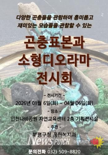 뉴스펀치 김길룡 기자 | 부평구는 인천나비공원에서 오는 6일부터 4월 6일까지 ‘곤충표본과 소형디오라마 전시회’를 개최한다고 밝혔다.