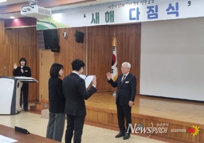 뉴스펀치 김길룡 기자 | 성주교육지원청은 2026년 1월 2일 3층 대회의실에서 전 직원이 참석한 가운데 부패인식 제고 및 청렴도 함양을 위한 ‘1인 1청렴 서약 실천의 날’을 실시했다.