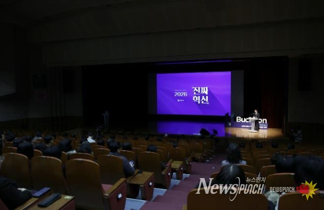 뉴스펀치 김길룡 기자 | 부천시는 2일 시청 어울마당에서 2026년 시무식을 개최하고, ‘진짜 혁신’을 주제로 한 올해 시정계획을 발표했다. 시는 올해를 ‘가짜 일’을 줄이고 △민생 △미래 △공간 △행정 등 4대 혁신과제를 중심으로 시민의 일상에 체감되는 변화를 이끌겠다는 방침이다.