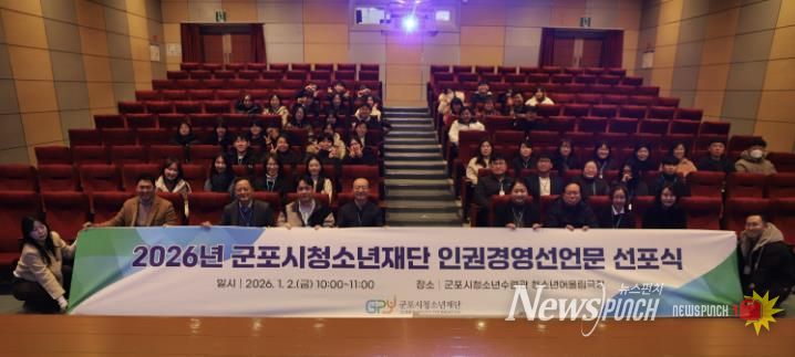 시무식에서는 김덕희 대표이사의 신년 인사말씀을 시작으로, 재단의 경영 철학과 가치 실현 의지를 담은 군포시청소년재단 인권·경영 선언문 선포식이 진행됐다. 이를 통해 재단은 인권 존중을 기반으로 한 책임 있는 경영과 청소년 중심의 공공기관 운영 의지를 공식화했다.