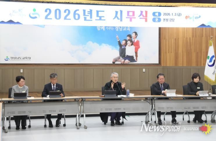 뉴스펀치 김길룡 기자 | 경상남도교육청은 2일 오전 본청 강당에서 2026년 시무식을 열고 새해 업무를 본격적으로 시작했다.