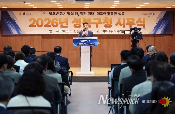 뉴스펀치 박상훈 기자 | 서울 성북구가 2일 성북구청 다목적홀에서 전 공직자가 함께하는 2026년 성북구 직원 시무식을 개최하고, 구민이 일상에서 체감하는 변화를 만들어 가기 위한 한 해의 출발을 알렸다.