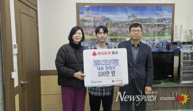 뉴스펀치 박상훈 기자 | 동두천시 상패동 행정복지센터는 지난 2일 관내 위치한 동두천크림피트니스헬스&PT지행점으로부터 저소득 취약계층을 위한 이웃돕기 성금 100만 원을 기탁받았다고 밝혔다.