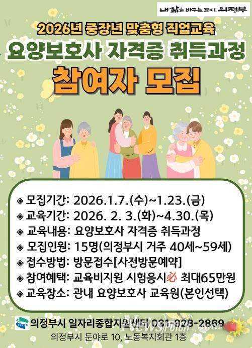 뉴스펀치 박상훈 기자 | 의정부시는 맞춤형 직업교육 취업 프로그램 ‘요양보호사 자격증 취득과정’에 참여할 구직자를 모집한다.