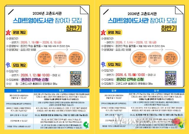 뉴스펀치 박상훈 기자 | 김포시 고촌도서관이 2026년 1월 19일부터 12월 18일까지 ‘2026년 스마트영어도서관’을 운영한다.