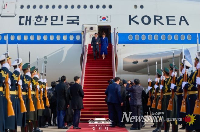 뉴스펀치 김용희 기자 | 이재명 대통령이 4일 오후(현지시간) 중국 베이징에 도착했다. 시진핑 중국 국가주석의 초청으로 중국을 국빈 방문한 이 대통령은 시 주석과의 정상회담을 포함해 3박4일간 일정에 돌입한다.