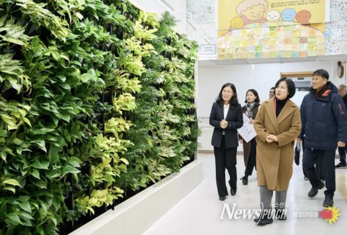 ‘일상의 숲’이라는 이름을 가지게 된 해당 실내정원은 휠체어 통행에 방해가 되지 않도록 바닥 대신 벽면을 활용한 ‘벽면 녹화’ 방식으로 정원을 조성했다. 이에 수중재활센터와 복지관 출입구 및 실내 카페의 벽면은 산호수, 스킨답서스 등 공기정화 효과가 탁월한 식물이 심어져 쾌적함이 한층 높아졌다.