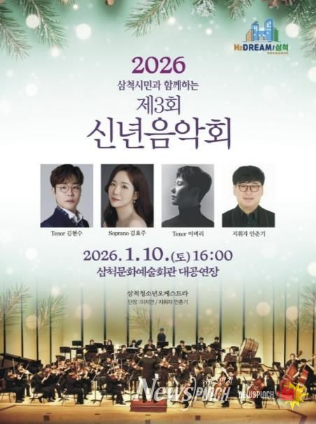 뉴스펀치 조평훈 기자 | 삼척시는 새해를 맞아 시민과 함께 문화로 희망을 나누는 '2026 삼척시민과 함께하는 제3회 신년음악회'를 오는 1월 10일 오후 4시, 삼척문화예술회관 대공연장에서 개최한다.