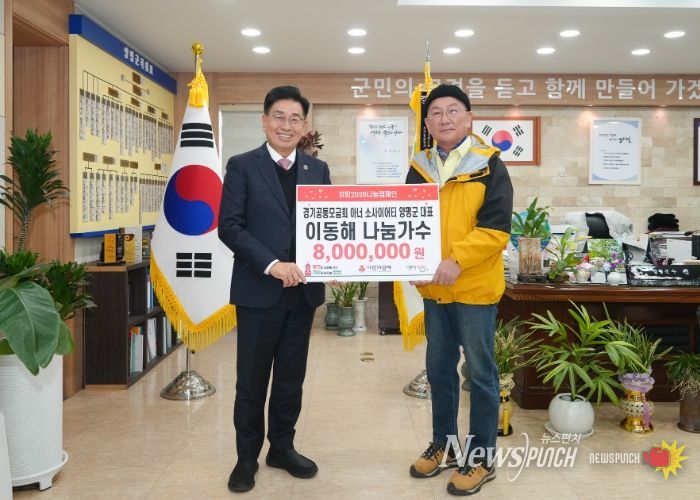 뉴스펀치 박상훈 기자 | 양평군은 지난 5일, 나눔가수 이동해가 지역 내 취약계층의 따뜻한 겨울나기를 지원하기 위해 ‘사랑의 연탄모으기 운동’ 성금 800만 원과 지역 인재 육성을 위한 교육발전기금 200만 원을 기탁했다고 밝혔다.
