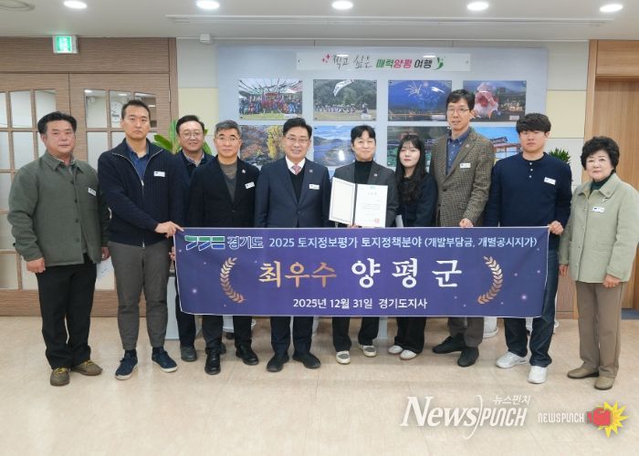 뉴스펀치 박상훈 기자 | 양평군은 경기도가 주관한 ‘2025년 토지정보 종합평가’에서 토지정책 분야(개발부담금 및 개별공시지가) 최우수 기관으로 선정됐다고 밝혔다.