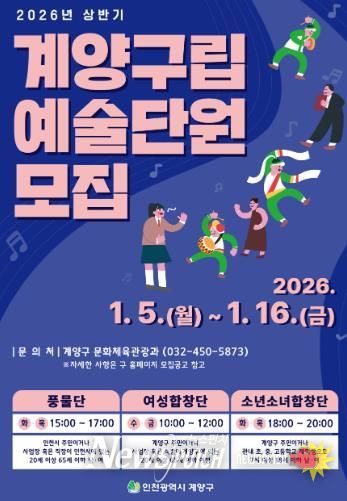 뉴스펀치 정홍균 기자 | 인천광역시 계양구는 구민의 문화예술 향유 기회를 확대하고, 지역 문화예술의 지속 가능한 성장을 함께 이끌어 갈 ‘2026년 상반기 계양구립예술단’ 신규 단원을 공개 모집한다고 밝혔다.