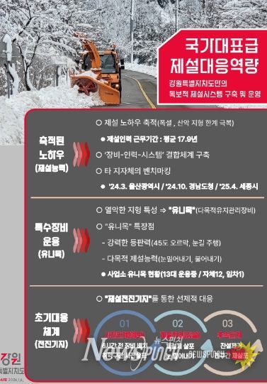 아울러 이번 제설대책 기간에는 지자체별 제설 역량을 초과하는 ‘극한폭설’ 발생에 대비해 도와 시군의 제설 자원을 '도-시군 제설 긴급대응반'을 구성해 운영 중이다.