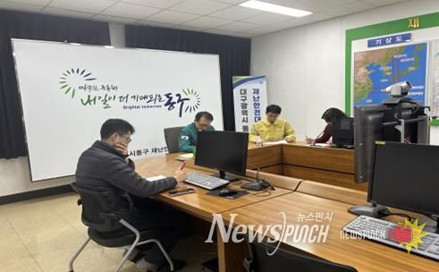 뉴스펀치 조평훈 기자 | 대구 동구청은 각종 재난 상황에 신속하게 대응하기 위해 이달 12일부터 24시간 재난안전상황실을 연중무휴로 운영한다.