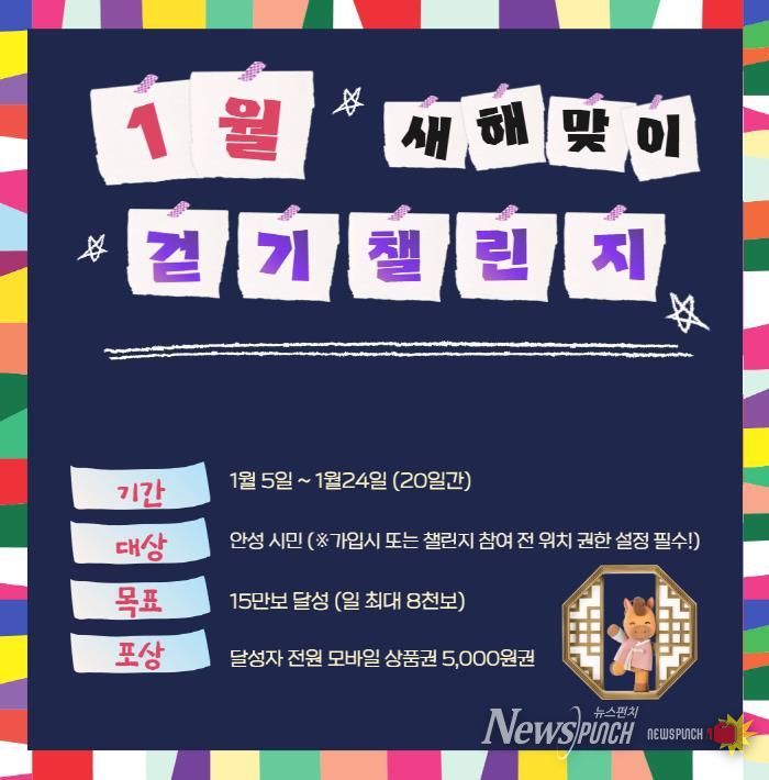 뉴스펀치 박상훈 기자 | 안성시보건소는 2026년 새해를 맞이하여 시민들의 건강 증진과 일상 속 운동 실천을 독려하기 위해 1월부터 12월까지 모바일 걷기앱 ‘워크온’을 이용한 걷기챌린지를 운영한다.