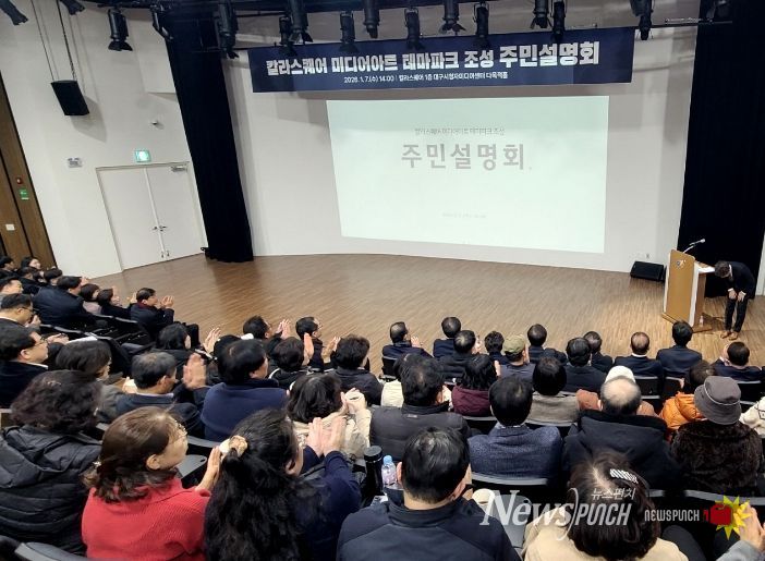 뉴스펀치 조평훈 기자 | 대구 수성구는 7일 칼라스퀘어(대구스타디움몰) 내 시청자미디어센터 다목적홀에서 ‘칼라스퀘어 미디어아트 테마파크 조성 주민설명회’를 개최했다.
