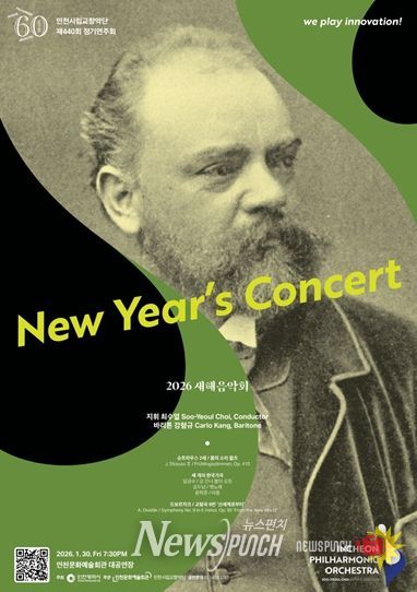 뉴스펀치 정홍균 기자 | 창단 60주년을 맞아 시민의 곁으로 더욱 친근하게 다가가고 있는 인천시립교향악단(예술감독 최수열)이 '2026 새해음악회'로 병오년(丙午年)의 힘찬 포문을 연다.