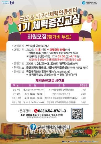 뉴스펀치 정홍균 기자 | 군산체력인증센터가 2026년 1기 체력증진교실 수강생을 모집한다고 8일 밝혔다.