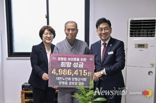 전진선 양평군수는 “어르신 한 분 한 분의 마음이 모여 아이들에게는 희망이 되고, 지역사회에는 세대 간 신뢰와 연대의 온기를 전해주었다”며 “기탁된 성금은 양평읍 관내 도움이 필요한 아동들을 위해 투명하고 뜻깊게 사용하겠다”고 말했다.
