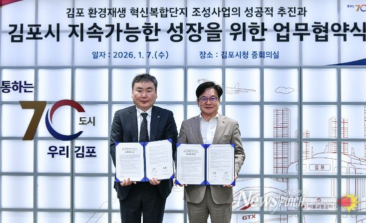 뉴스펀치 박상훈 기자 | 김포시가 7일 한국수자원공사와 김포 환경재생 혁신복합단지 조성사업의 성공적 추진과 김포시의 지속가능한 성장을 위한 업무협약을 체결했다.