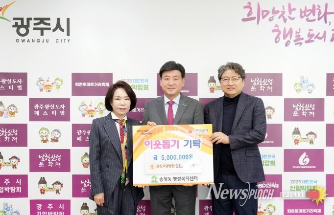 뉴스펀치 박상훈 기자 | 성심요양병원 유미하 이사장과 일신산업전기(주) 고수영 대표는 8일 광주시 송정동에 이웃돕기 성금 500만 원을 기탁했다.