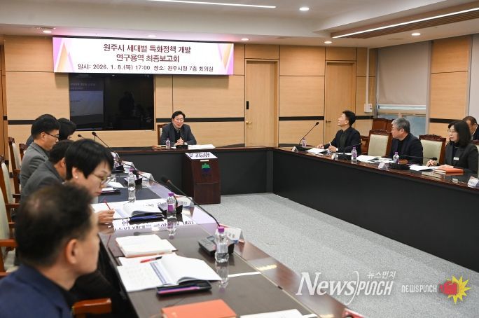뉴스펀치 조평훈 기자 | 원주시는 8일 오후 5시, 시청 7층 회의실에서 ‘원주 세대별 특화정책 개발 연구용역’ 최종보고회를 개최했다.