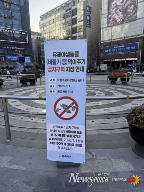 이는 지난 2025년 9월 30일 제정된'고양시 유해야생동물에 의한 피해 예방 및 관리에 관한 조례'에 따라 비둘기 등 유해야생동물로 인한 악취, 건물 훼손, 질병 전파 등의 피해를 줄이려는 조치다.