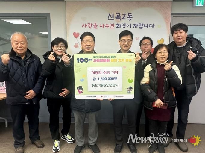 뉴스펀치 박상훈 기자 | 의정부시 신곡2동주민센터는 1월 8일 동오마을상인연합회가 ‘100일간 사랑릴레이 배턴 잇기’에 동참해 이웃돕기 성금 150만 원을 기탁했다고 밝혔다.
