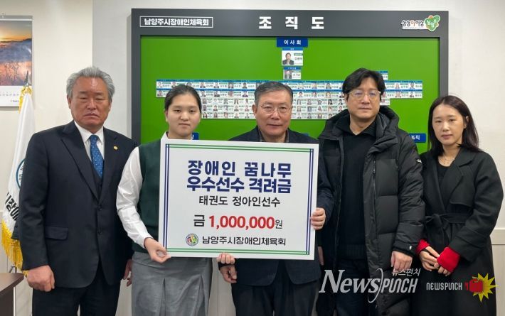 이날 행사에서 손기남 남양주시장애인체육회 수석부회장이 장애인태권도 국가대표 정아인 선수에게 직접 격려금을 전달했다. 전달식에는 윤성한 남양주시장애인태권도협회장을 비롯한 관계자와 선수 가족이 함께 참석해 의미를 더했다.